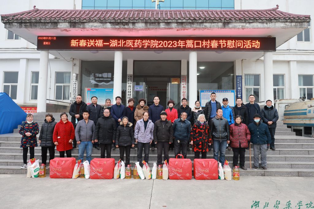 本网讯(文/孙敬龙 图/郑建超)1月11日上午,湖北医药学院党委副书记、校长王云甫,校党委常委、副校长李云霞,校工会常务副主席袁文,党委宣传部副部长郑建超等一行前往丹江口市蒿口村慰问当地困难群众,进行工作队员轮换交接。