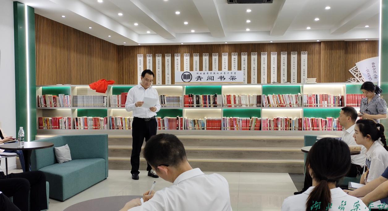 “青阅书架”打造充电蓄能“新阵地”。走进学校图书馆智享阅读空间,引人瞩目的是一排精美的书架“青阅书架”。书架中涵盖了党史党建、文学名著、历史文化等各类书籍。活动伊始,学校党委副书记、校长王云甫为书架揭幕,强调青年干部要将此作为工作之余的“好去处”,用好这一“充电蓄能”新阵地,在好书的滋养中,坚定理想信念、获得智慧启发、涵养浩然之气。