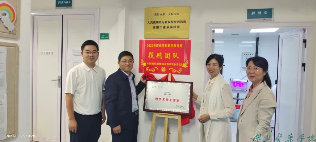 下午,张海蛟与附属襄阳市第一人民医院副院长邢利民为段鹏博士“湖北医药学院教学名师工作室”揭牌。调研组参观了人类疾病斑马鱼模型新药筛选襄阳市重点实验室。座谈会上,邢利民介绍了第四临床学院襄阳校区的基本情况。第四临床学院分党委班子成员汇报了双院融合进展、分党委民主议事和党建品牌建设情况,交流了异地办学学生党员教育管理的经验和存在的问题。附属医院其他领导、教师代表聚焦课题,交流经验,提出建议。学校职能部门同志对相关意见建议进行了回应和说明。