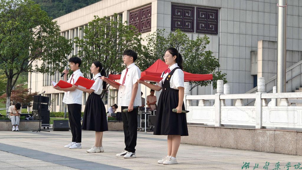 国旗护卫队护送国旗进场,全体师生行注目礼,鲜艳的五星红旗在国歌声中冉冉升起,4名同学带来《清风进校园 廉洁在我心》主题朗诵,一声声、一句句涤荡人心。随后,主持人带领全体同学许下诚信应试,以身守正的承诺,号召大家做正直无私、尊重规则、自律自强的时代青年,为社会主义现代化建设贡献青春力量。
