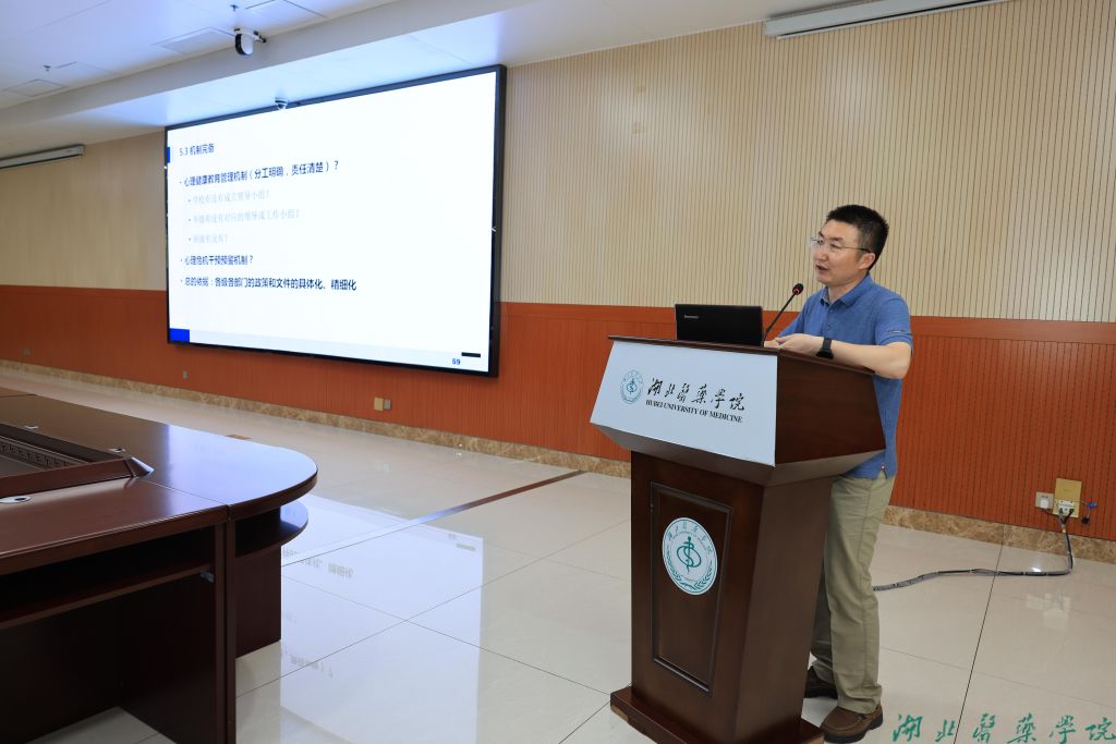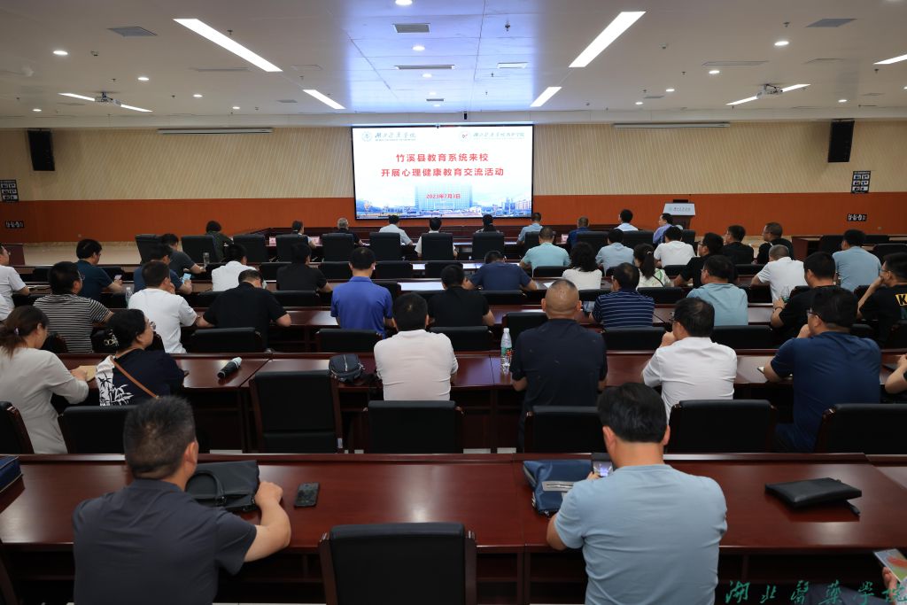 本网讯(文/扶长青 图/鲍晓宇)7月3日,竹溪县教育系统一行50余人在县人民政府教育督导室主任胡青带队下来校开展心理健康教育工作经验交流,湖北医药学院党委副书记、校长王云甫,党委常委、组织部部长张海蛟出席交流会,学工部、人文社会科学学院、继续教育学院等部门负责人,应用心理学系骨干教师、大学生心理健康教育中心全体人员参与交流活动。会议由张海蛟主持。