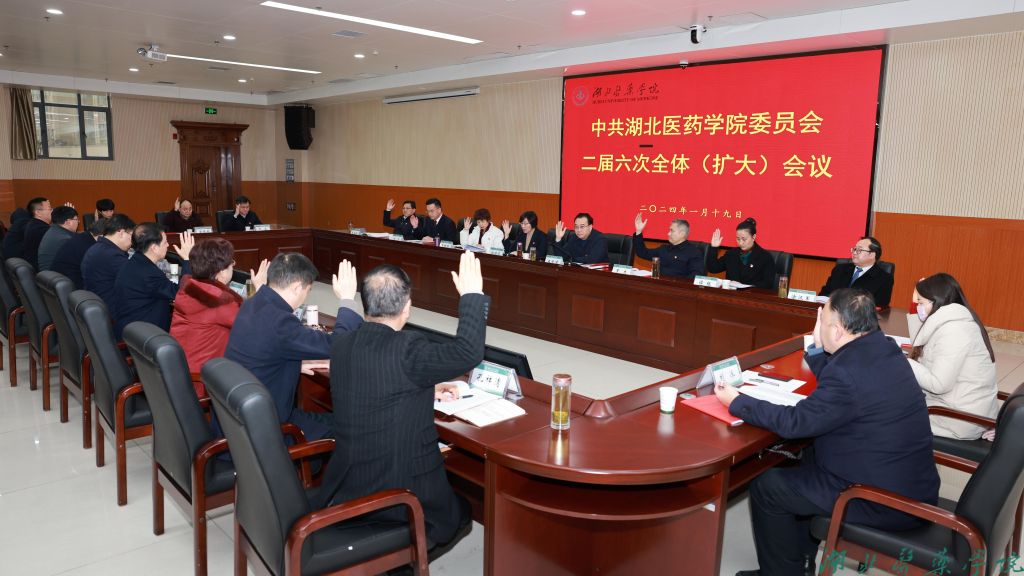 本网讯(文/赵曼 图/鲍晓宇)1月19日,中共湖北医药学院委员会二届六次全体(扩大)会议胜利召开。全体党委委员参加会议。会议由党委书记郑丹凤主持。