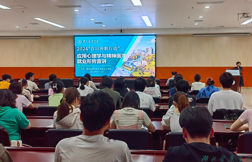宣讲会上,郑丹凤详细解读国家就业优先政策和高质量充分就业对我国全面建设社会主义现代化国家的重要意义,对当前的就业形势,大学生就业总量压力、结构性矛盾、重点群体就业难题进行深入分析,详细介绍国家拓宽大学生就业渠道的系列举措、留鄂留堰及就业创业激励政策。郑丹凤结合近三年我校毕业生就业去向行业分布特点及应用心理学与精神医学就业数据,呼吁学生要树立正确的就业观,加强职业胜任力培养,突破医药专业行业一元化思维限制,勇于尝试新型职业、不同领域工作,到民营企业、重点行业、基层单位就业。郑丹凤鼓励同学们要刻苦学习、掌握知识、锻炼能力、提升本领,要立“良医”志,做“济世”者,将个人奋斗与强国征程同频共振。