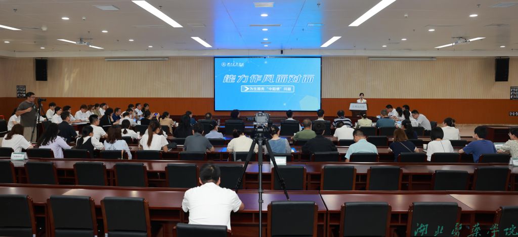 本网讯(图文 鲍晓宇)6月13日下午,湖北医药学院科教楼多功能厅会场,职能部门和师生评议团开始第一场“面对面”,聚焦“服务学生发展”的“中梗阻”问题,对话交流,会议气氛严肃热烈。