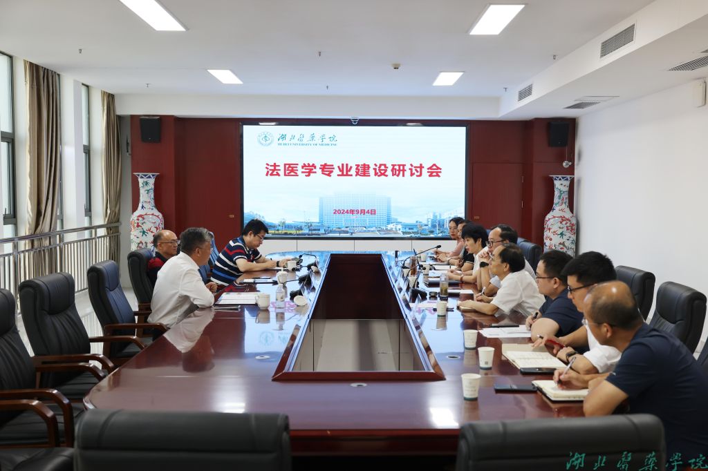 本网讯(文/何志凯 王悦 图/鲍晓宇 黄松鹤)9月3-4日,学校在科教楼1708会议室召开法医学专业建设研讨会。我校知名校友、中国工程院院士、法医学专家、广东省毒品实验技术中心主任法医师刘超,南方医科大学法医学院院长、司法鉴定中心主任、主任法医师朱波峰,山西医科大学特聘教授、博士生导师、主任法医师严江伟,十堰市公安局刑侦支队政委陈鹏莅临指导。党委副书记、校长王云甫,原党委书记涂汉军,党委常委、副校长严世荣,党委常委、统战部部长谭艳出席研讨会。