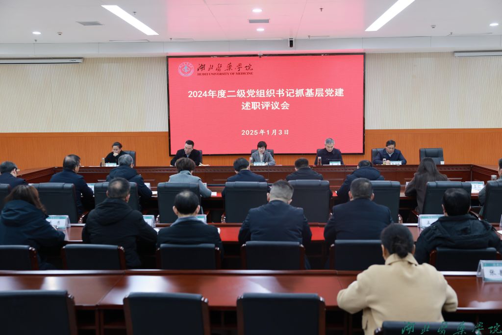 第一临床学院党委、第二临床学院党委、第三临床学院党委、第四临床学院党委等党组织书记现场述职。其他二级党委作书面述职,接受评议。