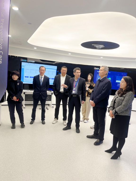 在数坤科技公司,罗杰一行实地参观了智慧医疗展厅,详细了解了公司在人工智能领域的新技术、产品及其在医疗、教育等行业的应用。座谈会上,罗杰首先介绍了近年来学校在科研创新、人才培养方面的突出成绩以及在智能影像工程专业等学科的建设成果。数坤科技创始人、董事长毛新生对罗杰一行的到来表示热烈欢迎,双方就推动科研项目合作,实现产学研深度融合;探索校企协同育人模式,促进我校智能影像工程专业课程共建、实习实训基地建设等方面达成了一系列合作意向。