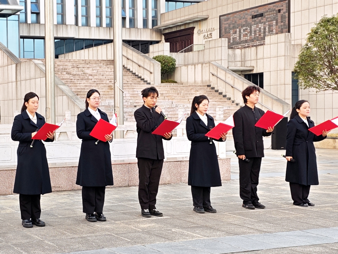 本网讯(通讯员 沈锐 彭楚涵)为迎接第十二个国家宪法日,深入学习宣传宪法知识,弘扬社会主义法治精神,2025年12月1日清晨,湖北医药学院在科教楼升旗台前隆重举行“弘扬宪法精神,培育法治新人”主题升旗仪式。党委常委、纪委书记、监察专员徐荣,党委常委、宣传部部长陈建龙,发展规划与政策法规处、团委等部门负责人以及护理学院400余名师生参加本次活动。