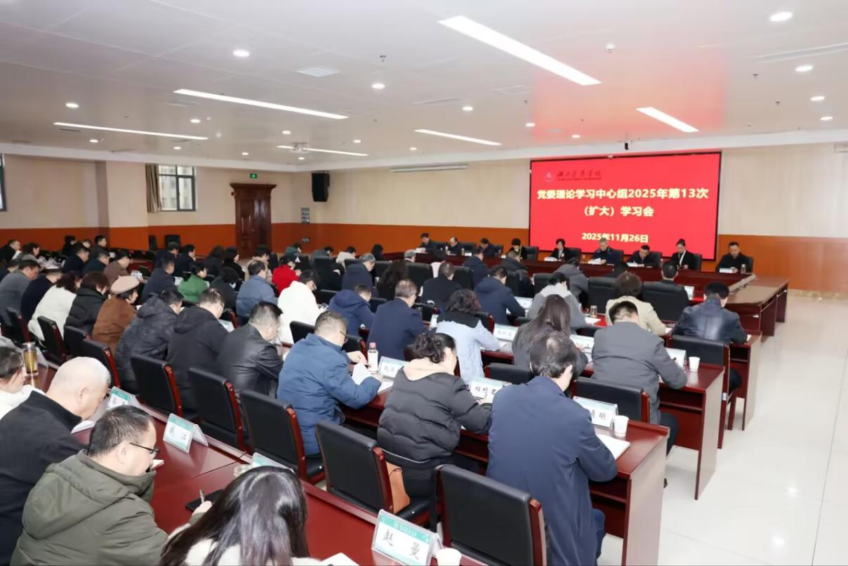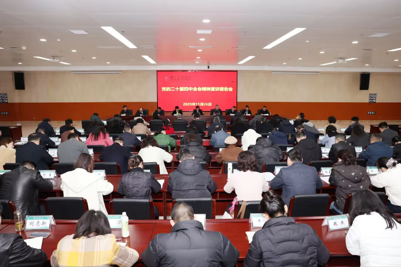 本网讯(通讯员 徐璠婧)11月26日上午,我校党委理论学习中心组(扩大)学习会暨学习贯彻党的二十届四中全会精神宣讲报告会在科教楼一楼多功能厅举行,校院两级党委理论学习中心组成员、纪委副书记、副处级以上干部、“三员”、宣讲团成员、支部书记以及无课思政课教师参加学习。