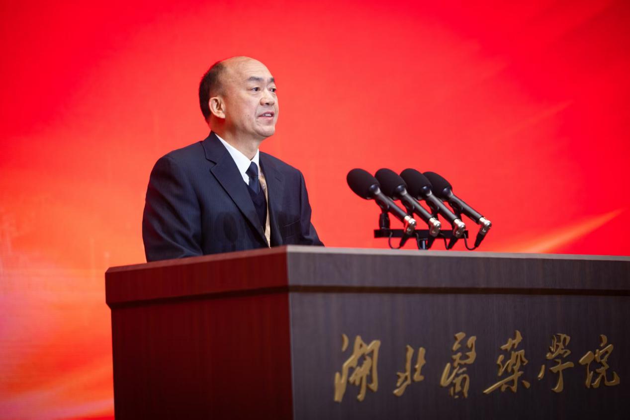 谢正学作为国内高校代表祝贺湖北医药学院迎来六十华诞。他回顾了湖北医药学院与华中科技大学同济医学院血脉相连的深厚渊源以及携手奋斗,践行“为党育人、为国育才”使命的滚烫情谊。希望湖北医药学院持续锚定目标,矢志医教协同,将优质资源转化为育人与区域发展优势,以创新教育体系赋能卫生健康事业高质量发展,以创新成果赋能地方生物医药产业高质量发展。华中科技大学将一如既往深化合作,携手探索医学教育路径,为奋力谱写中国式现代化湖北篇章提供坚实的人才支撑和健康保障。